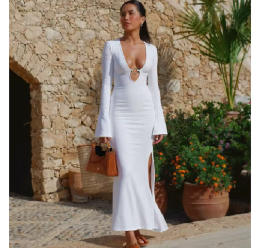 Sexy Solid Hollow Out Dress